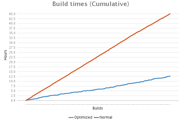 We have gained about 70% reduction of cumulative build time thanks to test optimization. |