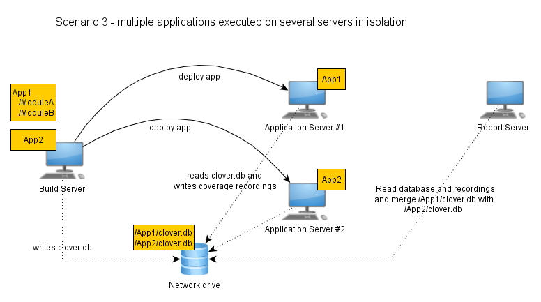 (e.g. a Maven project with a <singleCloverDatabase> or an Ant project with one <clover-setup>) - application is deployed to several machines