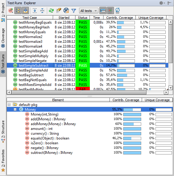 You have already learned how to navigate through code coverage and test results. But don't you have a feeling that your coverage reports could be more accurate when focused on really important areas of your application? If you do so, don't hesitate to read 4. Scope of instrumentation in IDEA to learn how to configure instrumentation scope from whole project down to a single line of code.