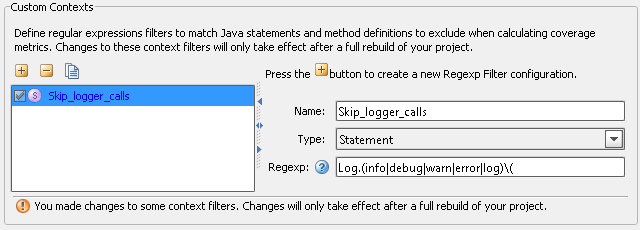 In the "Built-in context filters" box you can choose Java language constructs or coding patterns to be excluded. The most interesting are:
